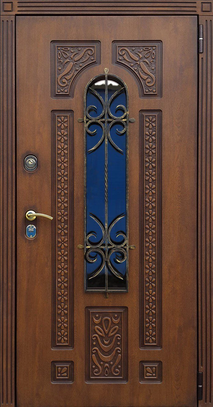 Входные двери в Муравленко с применением декора витражом изготавливаются из стального профиля, придающего прочность конструкции, а сама витражная вставка обладает высокой взломостойкостью, поскольку для витражных композиций используется специальное стекло, обработанное особым образом. Усилить надежность витражного элемента можно с помощью использования декоративных кованных решеток.